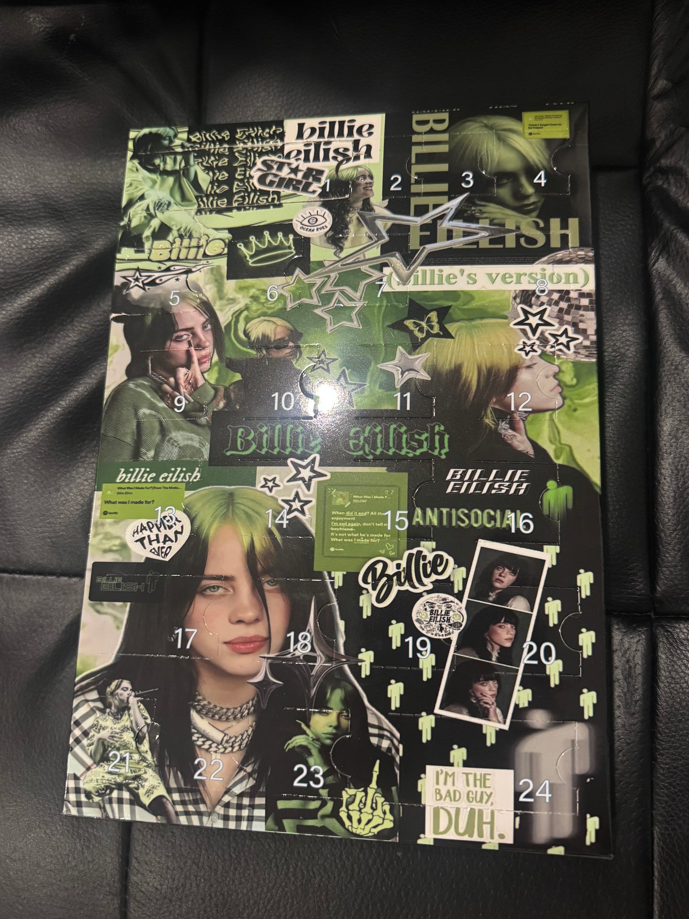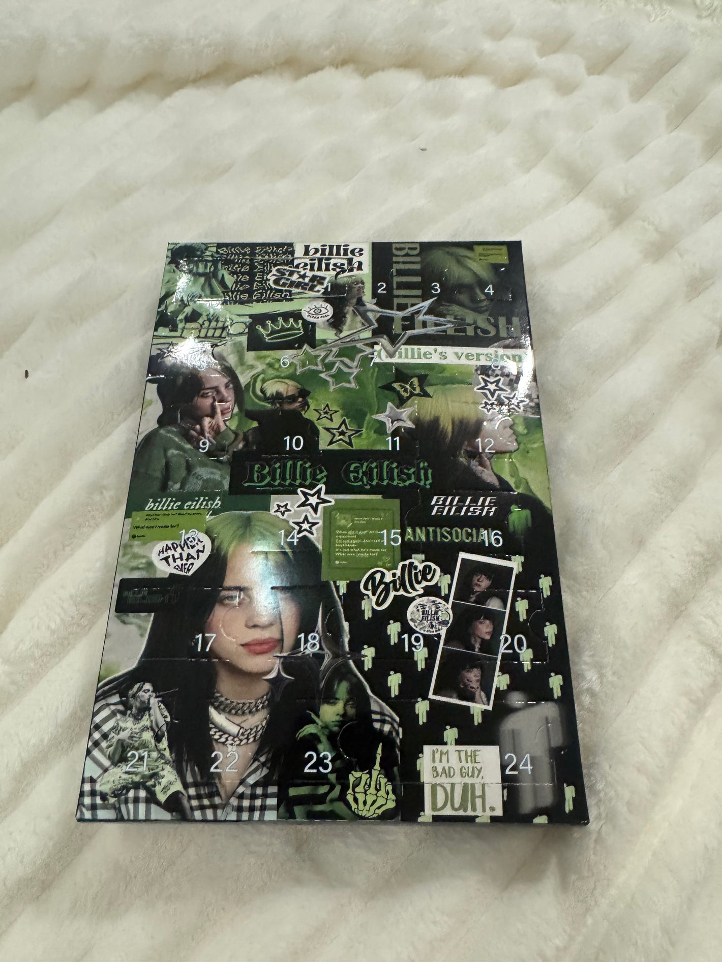 Every piece inside was curated with care for true Billie fans who love her aesthetic, her energy, and her world. From mini prints to stickers and tiny surprises, each day adds a little magic to your routine 💚✨